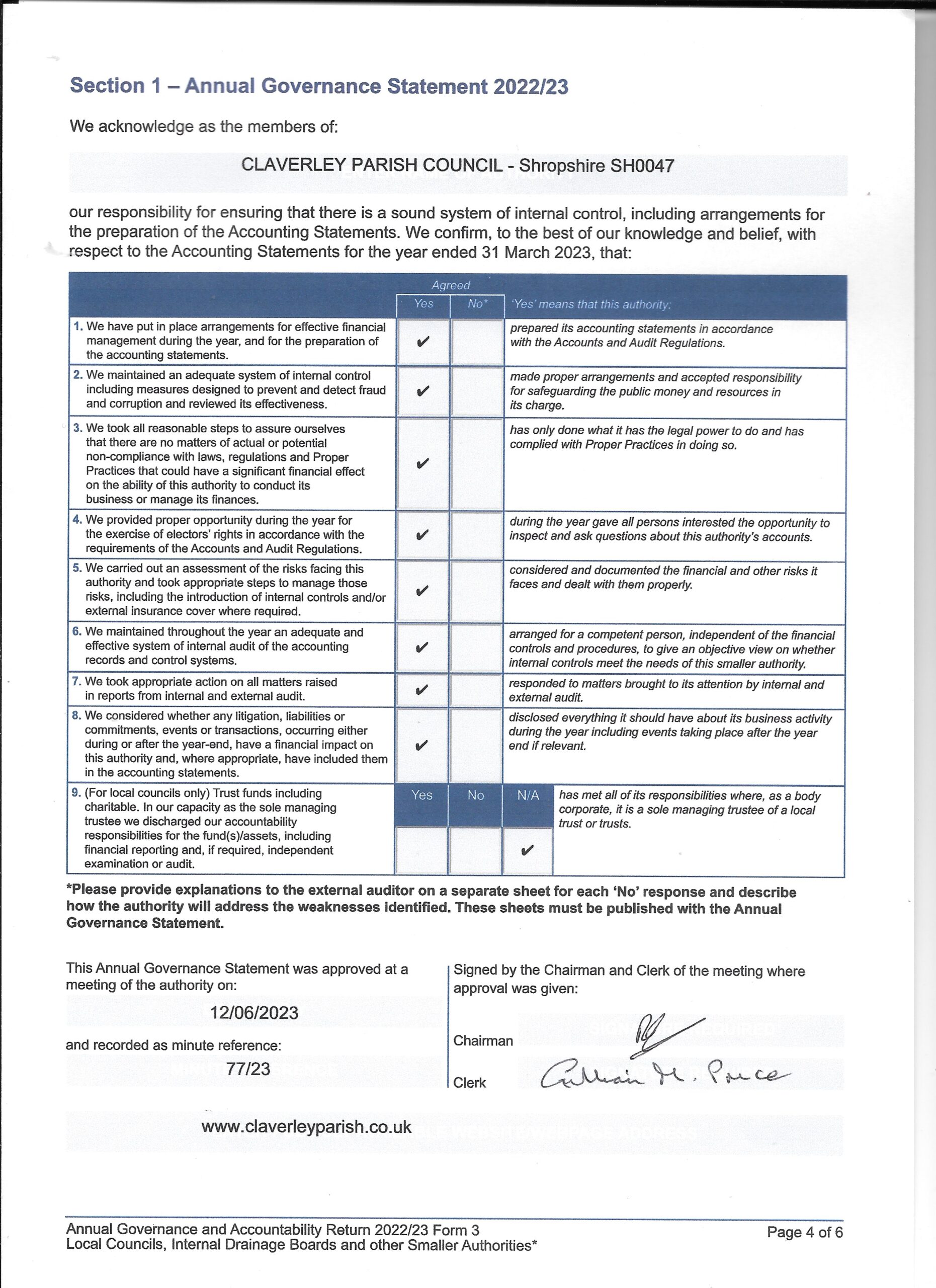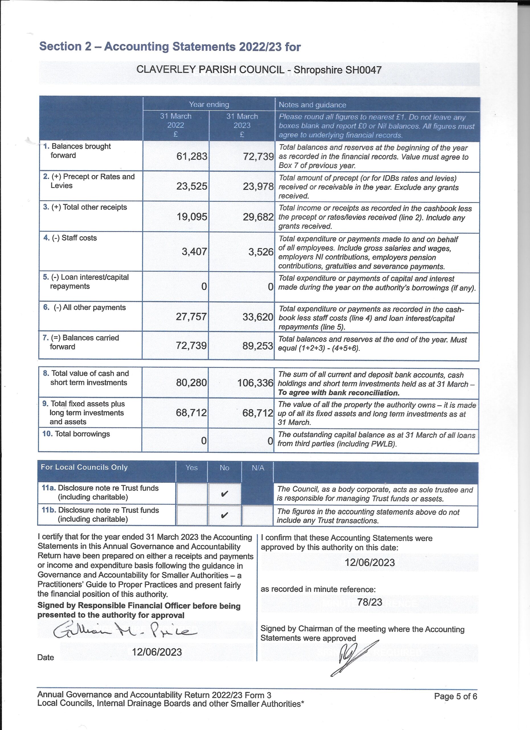 Please find attached copies of the Annual Governance and Accounting returns for 2022/23.